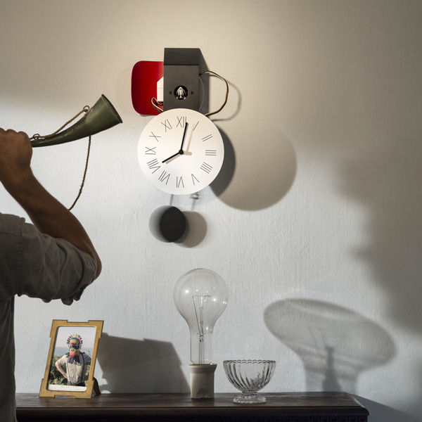 Attimo è l'orologio senza pudore, l'oggetto mostra senza censura la meccanica di cui è composto; forme che espletano funzioni, i cavi elettrici, connessioni, le regolazioni accessibili e visibili, un orecchio metallico ricurvo amplifica il canto del cucù.