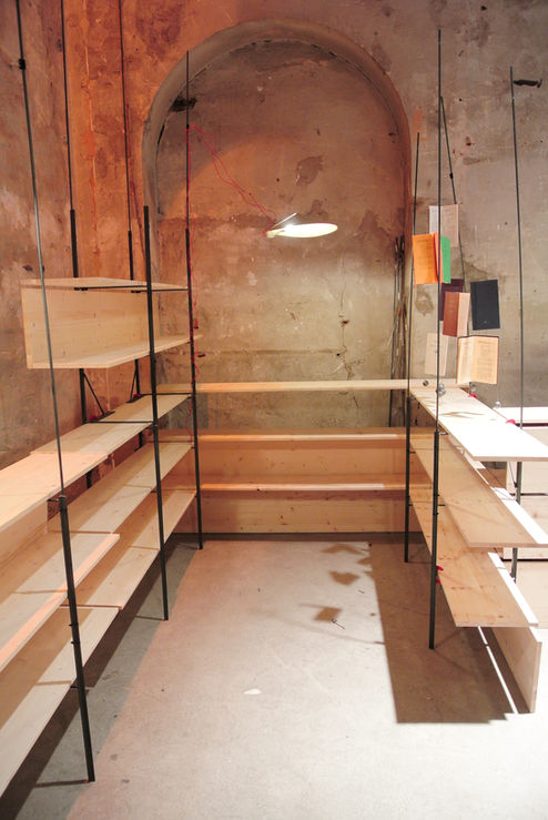 200 palloncini gonfiati a elio e mossi da un sistema di cavi e tiranti, galleggiano leggeri sopra le teste dei lettori come a ricordare che leggere rende leggeri...